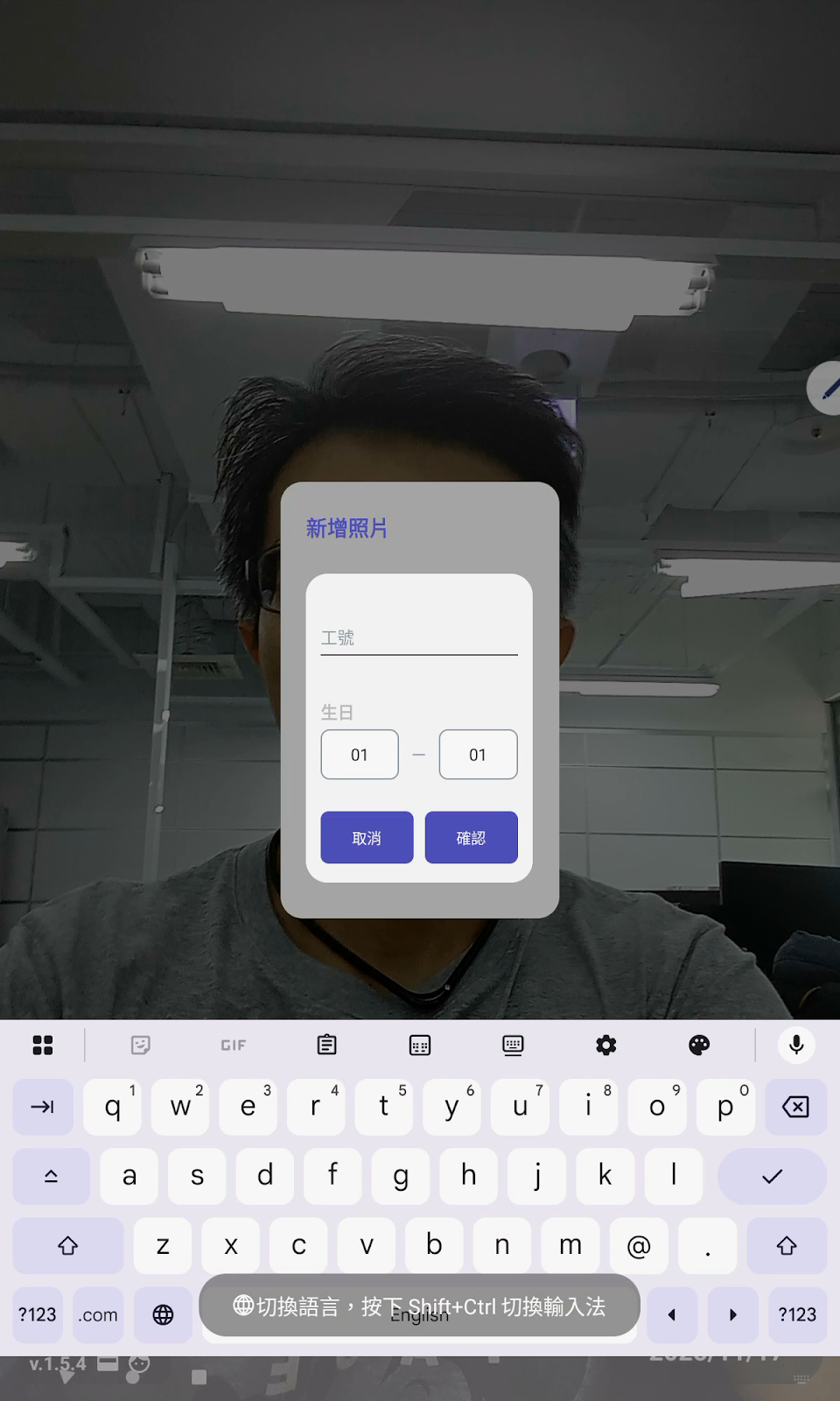 按下 相机图示 后,系统会要求您先输入 员工编号 与 出生日期 进行简单的身份验证。