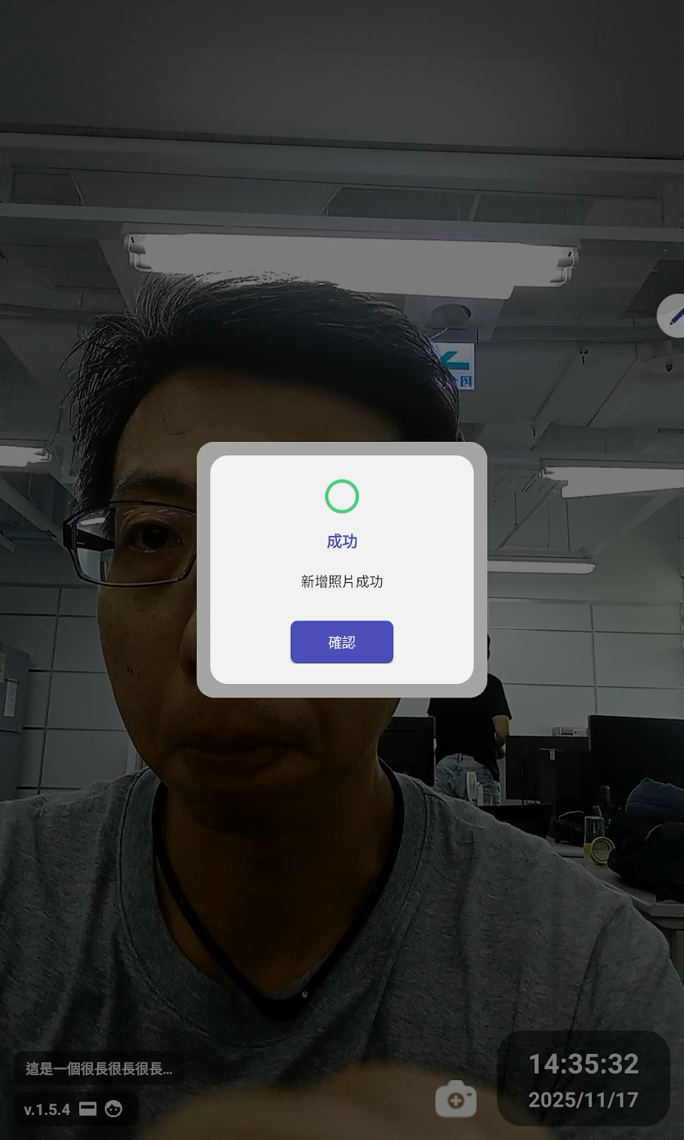 除了标准的操作(「卡片验证」与「人脸识别」)之外,App 也提供使用者 新增照片 的功能。此功能的目的为:当使用者外观发生较大变化时(例如:脸部受伤),使用者可以借此新增一张新的脸部照片至后端 API 服务器的人脸数据集,以提高识别率。