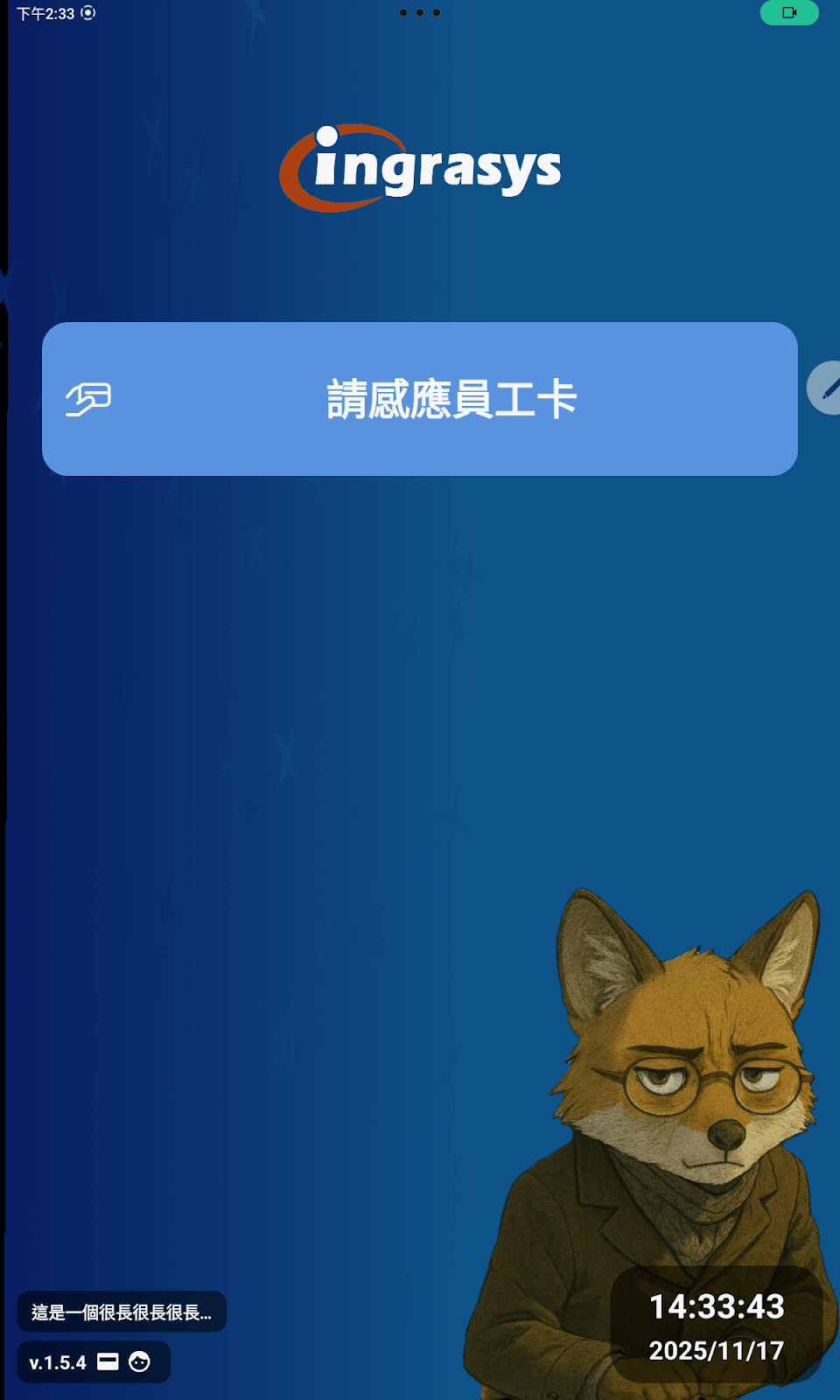 若您的系统管理员经由网页界面将 App 的运作模式设置为 卡片与人脸识别模式,您将会看到以下的欢迎画面,正在等候您的员工卡片验证。